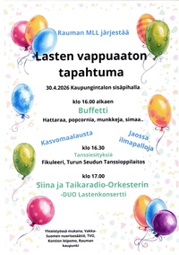 Ilmapalloja jaetaan, kasvomaalausta toimitetaan, ja myynnissä hattaroita, simaa, poppareita ym. puffetissa.